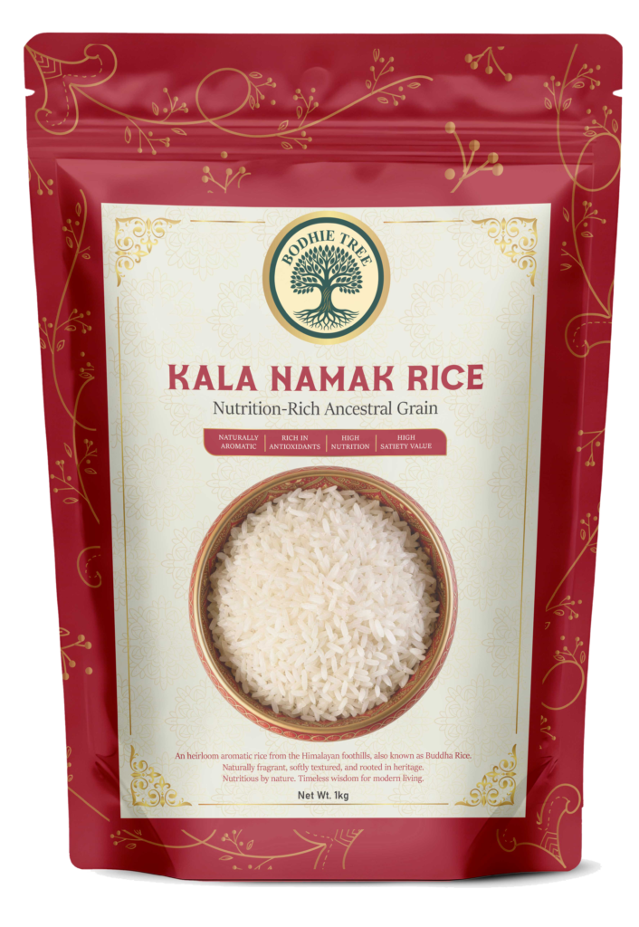 Discover Kala Namak Rice — a legendary, highly aromatic heritage rice with a history that stretches over 3,000 years. This unique rice traces its roots back to the Buddhist period (around 600 BCE) and is often referred to locally as “Buddha Rice.”